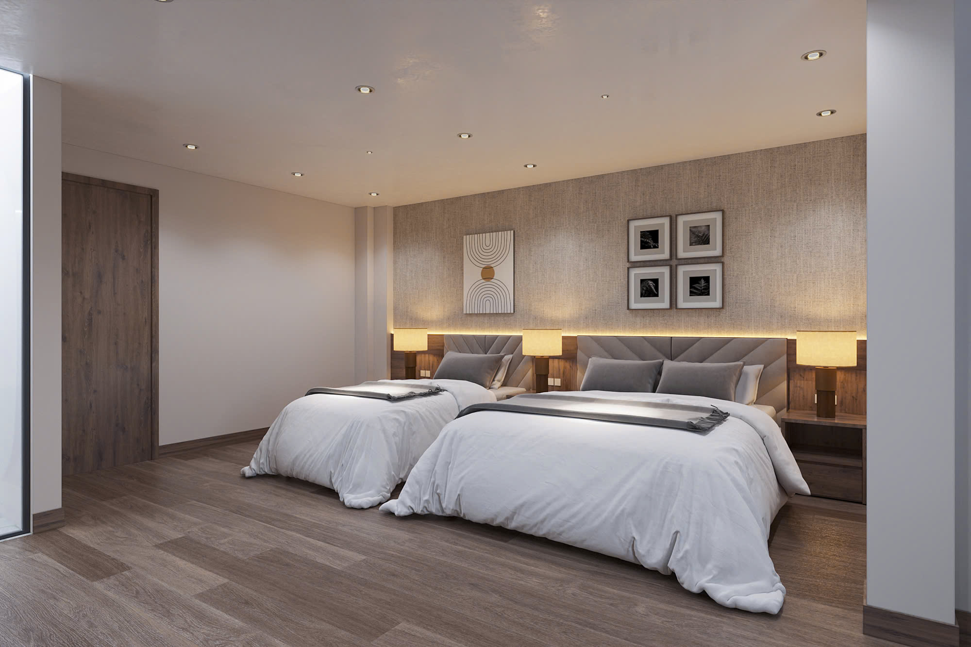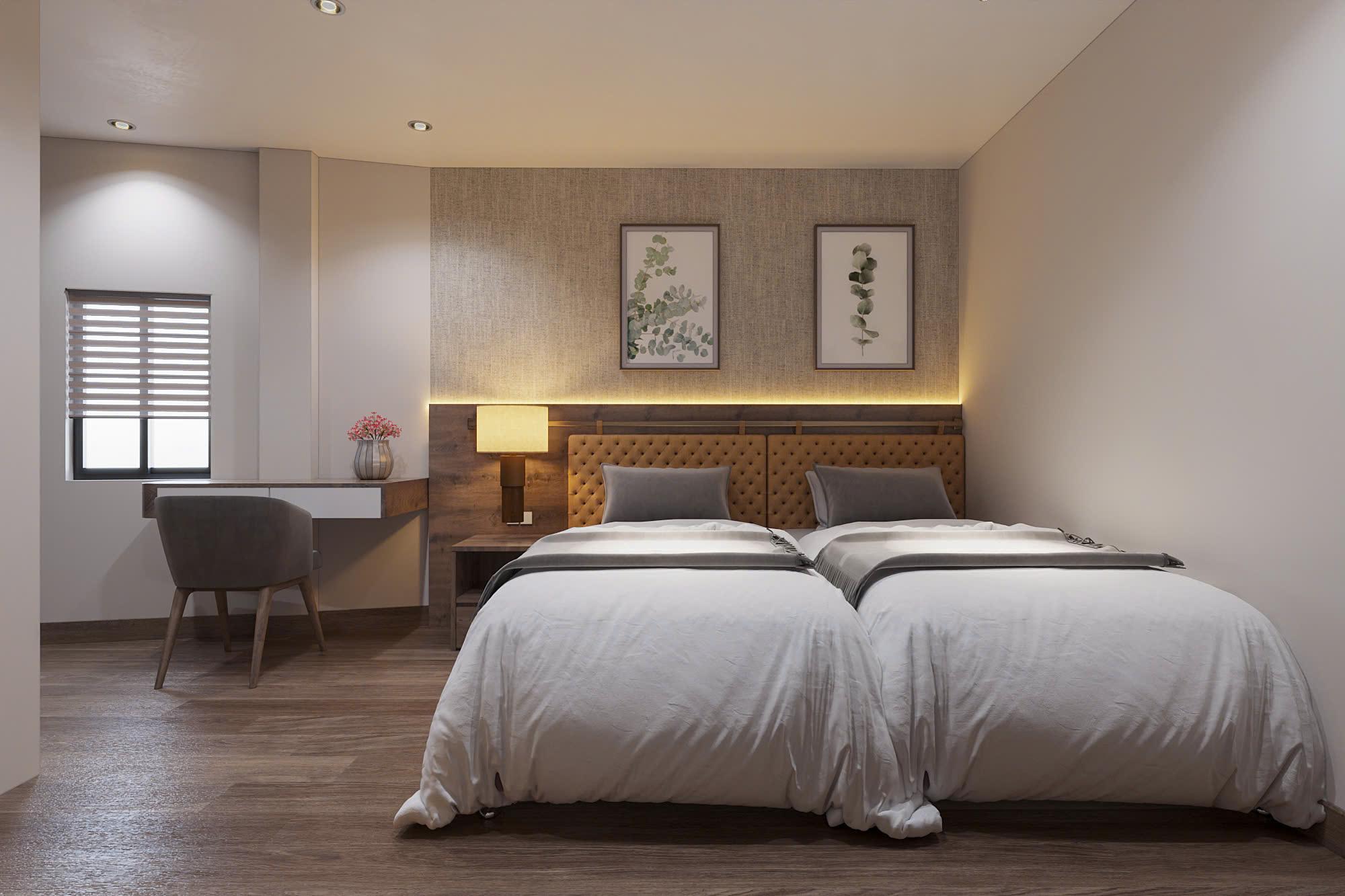 A versatile room that offers a choice of double or twin beds, complete with a window for natural light and a cozy ambiance.